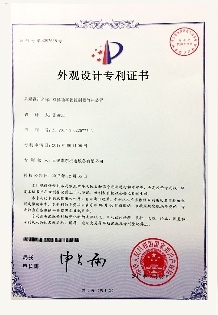 当前位置:首页>>关于志东>>资质证书>>双排功率管控制器散热装置