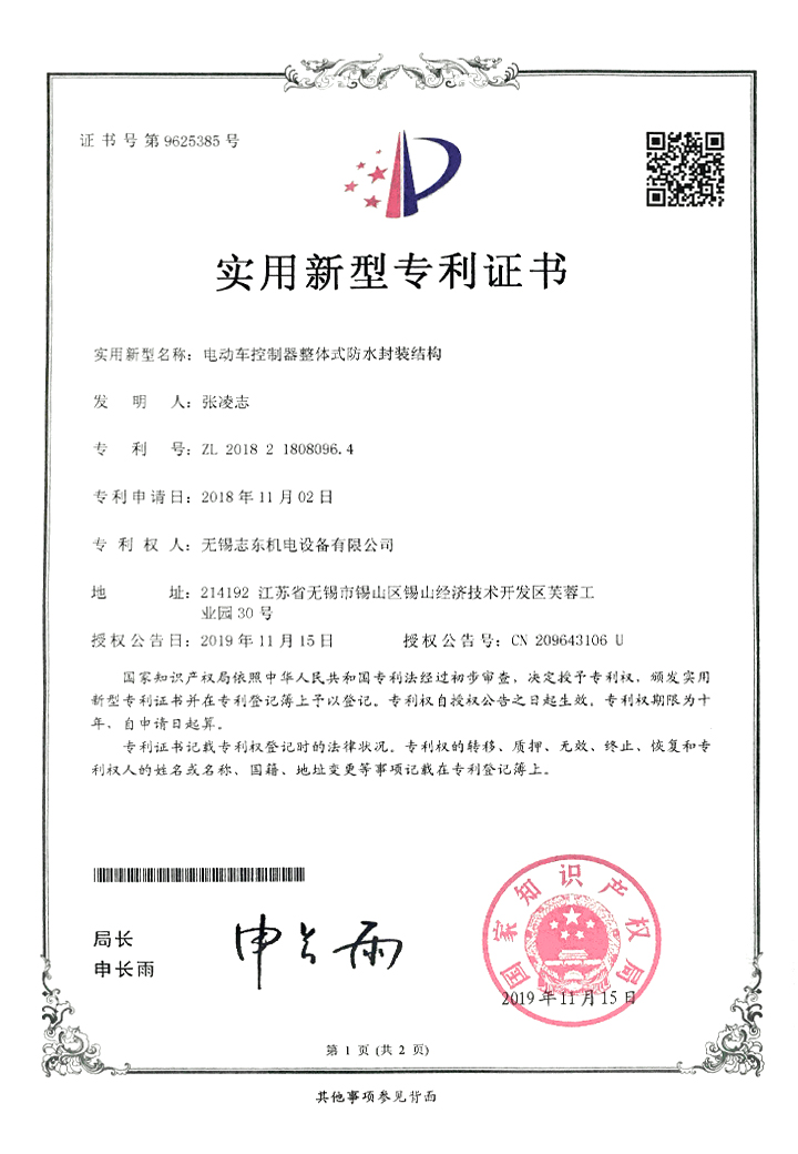 当前位置:首页>>关于志东>>资质证书>>电动车控制器整体式防水封装结构