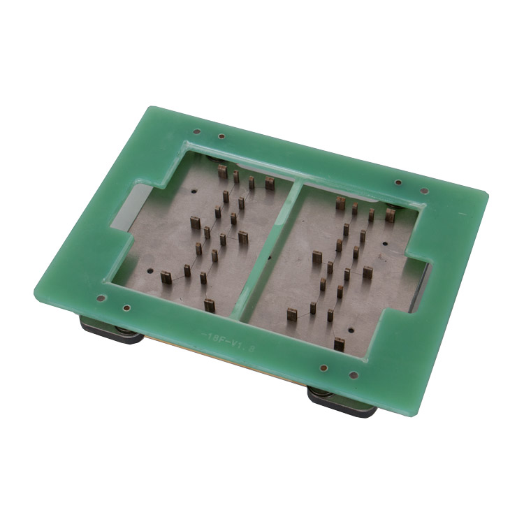 模具可将导电铜皮扣入控制器主板,几拼板同时扣入,工作效率高;且在导电铜皮勾脚扣入PCB板孔时不会伤害到主板上的贴片元件,产品工艺品质更有保证,提升效率。