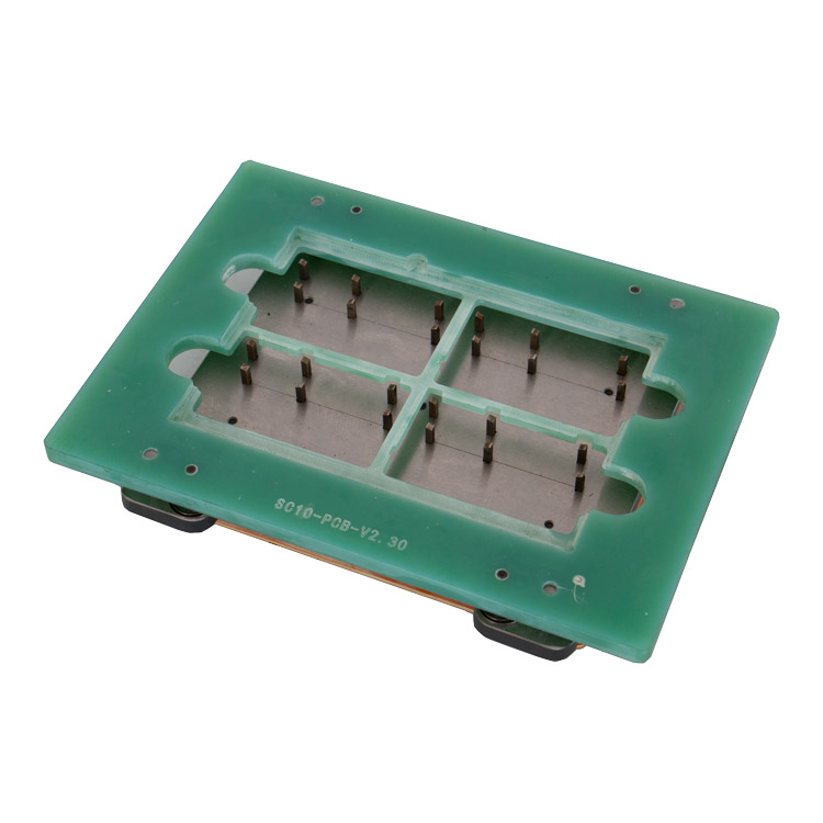 模具可将导电铜皮扣入控制器主板,几拼板同时扣入,工作效率高;且在导电铜皮勾脚扣入PCB板孔时不会伤害到主板上的贴片元件,产品工艺品质更有保证,提升效率。
